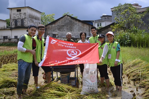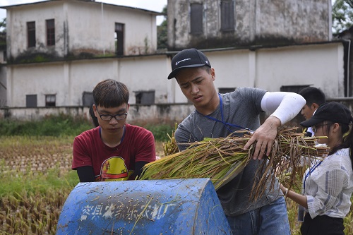 为了切实地体验农村生活,增进村民与“红土”队员之间的感情,感受当地文化风俗,7月10日上午,岭师“红土情缘”社会实践队共建组共6人在茂名市信宜北界双寿村的稻谷田里帮农民收割稻谷。