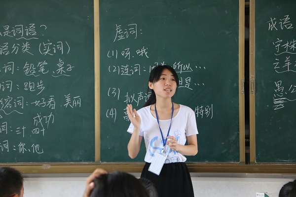为提高学生们对词语的理解能力,让学生更加体会到中文的博大精深及其中的奥妙,7月11日上午,岭南师范学院“传承”社会实践队队员陈观晓在湛江市遂溪县黄略镇许屋学校三年级开展了奥妙词语课。