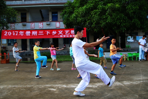 7月11日16:30,沙地小学全体师生与家长欢聚操场,参加萌芽社会实践队举行的一场异彩纷呈的文艺汇演。