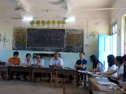 “非常荣幸实践队的队员能来到那宛村里的小学进行三下乡活动!”会议之始吴校长就表达了对“开拓者”们的热烈欢迎与殷切期待。他表示,相信在与市区学校有所不同的学习环境中,“开拓者”实践队会有意想不到的收获。此外,他也真诚地希望队员们能够用心的对学生进行教导,让他们学到更多的知识和技能。最后吴校长提出了两点建议:第一,他希望队员们能对孩子们细心教导,让他们懂得感恩,懂得报答。第二,他希望队员们在能通过给孩子们分享自己的经历,让孩子们能够收获更多,并促使他们树立远大的理想。随后那宛小学张煌校长也作出了表态,他非常同意吴校长的建议,也真心希望队员们能够珍惜时间,合理安排,尽可能在有限的时间里让孩子们有最大的收获。