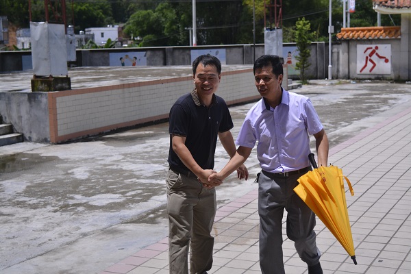 经过三个多小时的车程,学院领导终于来到了双寿小学,首先他们对双寿小学校长表示衷心的感谢,感谢他对“红土”队员们的照顾,以及对这个实践活动的支持。接着,在“红土”队长的带领下,学院领导参观了双寿小学。得知队员在三下乡期间打地铺、饭菜简单、天气多变等艰难环境下生活,领导给予了爱的关怀,希望队员能继续秉持着吃苦耐劳,坚持不懈的精神,在三下乡的过程中提升自身修养,不断丰富自己,服务人民。最后领导们也祝福我们这一年下乡可以再创佳绩,继续把我们的“红土”精神发扬光大。时间总是很快流逝,在一片欢声笑语过后,“红土”队员和学院领导,以及双寿小学校长在炽热的阳光下拍了大合照。学院领导这次的探访不仅鼓励了疲惫的队员,让队员们感受到领导的关怀,还让队员们知道了下乡的真正意义。
