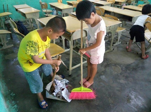 从校长的口中得知,学校会给每个人划分区域,轮到自己值日的时候,他们会十分自觉地带上工具清洁自己的区域。看着焕然一新的校园,感受着学生们那令人敬佩的自觉性,不能不感慨这些民风淳朴、人人勤勉的学生反而给队员们带来了更多的收获和启发。