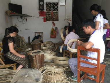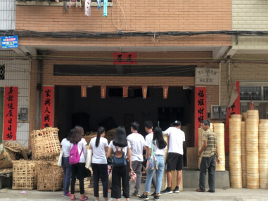 调研组的队员们“左右开弓”,分成两组对街道两边的村民进行采访。面带笑容的队员们先礼貌地表明来意,得到村民应允后才开始访问。许多热心的村民们向我们介绍制作蒸笼的整个流程。耐心解答队员们询问的问题,还为我们展示制作蒸笼的传统工具。队员们都认真聆听和做笔记。现场交流气氛融洽。作为散户的村民向调研组队员肯定家乡的箩竹的制作优势和良好的市场需求状况。他们之所以选择家庭作坊小生产是因为其收入的稳定性,一年到头都有工作,不会像有些工厂一样面临失业。村民都表示与老板联系密切,老板会上门收购或下单,按件付酬。