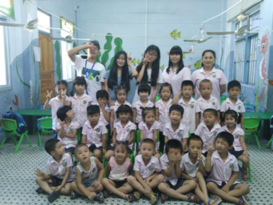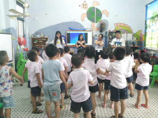 各位班主任在自己负责的班上举行结班仪式,与相处11天的老师和幼儿们道别。中班的班主任组织幼儿们跳之前学的幼儿舞蹈《虫儿飞》、《数鸭子》、《上学歌》等等。看着幼儿的出色表现,队员们都很欣慰。当班主任拿出预先给小孩子们准备的礼物时,他们激动地跳了起来。班主任将礼物送给幼儿园里的老师时,她感动得捂住了嘴巴。最后,在班主任和幼儿园老师的组织下,他们与班里的幼儿拍了最后一张合照,每个人的脸上都绽放了灿烂的笑容。