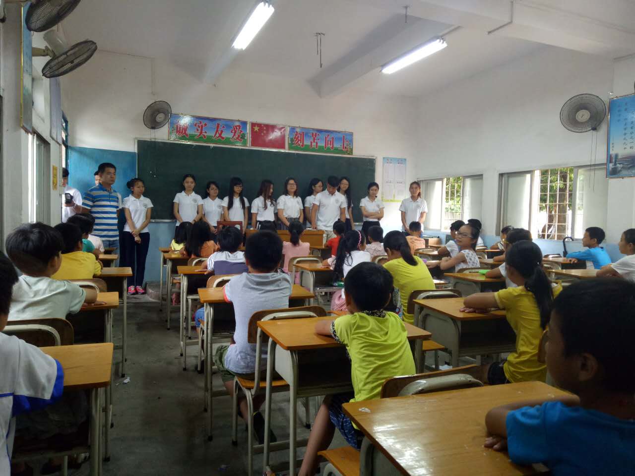 八点,志远三下乡实践队全体在校门口集合,迎接学生,让学生们签到,支教开启仪式正式开始。首先,志远队支教组的12成员开始自我介绍,一共教七个科目,分别是语文、数学、英语、书法、音乐、舞蹈、体育。再而队长许提明代表志远发表讲话:第一,他表示对校长全力支持志远实践活动的感谢;第二,希望同学们能够积极配合老师的教学安排;第三,希望队员们也能够给予同学们知识、技能、快乐以及成长。然后,校长发表讲话:第一,表示对志远队伍的欢迎;第二,表示对同学们学习的热情的赞赏;第三,强调同学们要按时到校,遵守课堂纪律,体育课堂上,一定要注意安全;第四,要求学生们的家长来接送学生上下课。最后各班主任把自己的班带开上课。下课后,我们采访了支教组的小老师们,她们表示并不是很了解学生们的水平,课堂有些单调,不过相信明天一定可以做到更好。小学生们则表示很喜欢音乐课,希望明天还能上音乐课。
