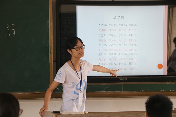 为了加强中国传统文化教育,让学生从小形成正确的人生观,增强学生们孝心观念,7月14日,数计学院“传承”社会实践队特开展以《三字经》为教学主题的特色课堂。