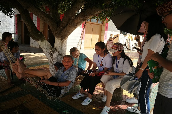 下午,在去往乌辉塘码头的路上,调研组的队员们还采访了附近的村民,更深一步了解到村民们采用传统方法捕鱼而不采用电子设备的原因。