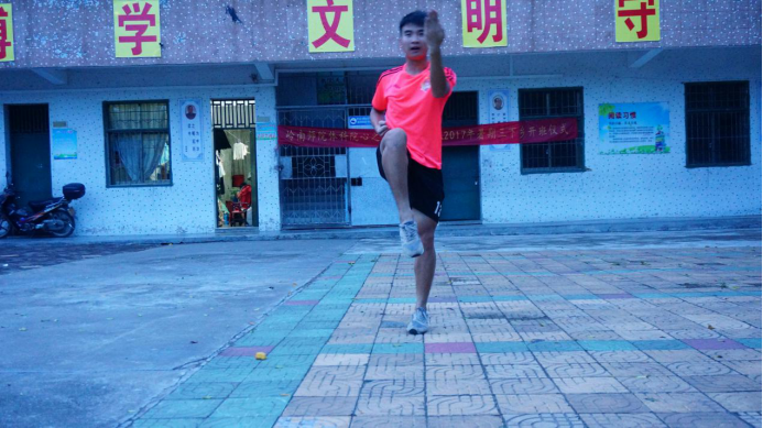 “格斗准备!弓步冲拳!穿喉弹踢!……”老师们铿锵有力的口号声响彻整个校园。看,他们身形矫健,拳脚敏捷,动作整齐,气势磅礴,时而松峙山岳,时而如白鹤亮翅,时而如金鸡独立。听,他们呼声响亮,声震冲天。他们双脚落地开山炮、两拳出击侠飓风。晚霞偷偷地溜走,天色也渐渐昏暗,然而老师们的热情没有丝毫减少。