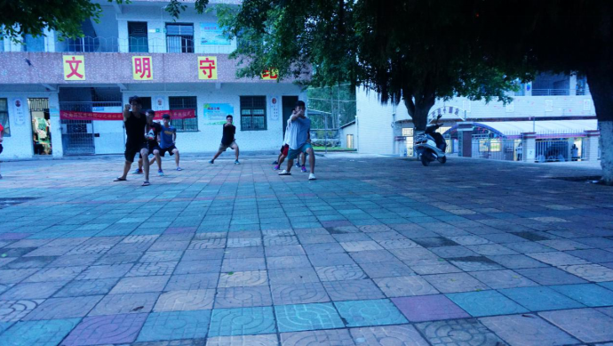一遍又一遍的重复练习,老师们早已汗流浃背,但是他们没有因此停下来,耽误训练的进度。“好!最后过一遍!给我做好了!”带队老师的声音已经沙哑,却没有丝毫放低声量。那整齐划一的动作,带来了视觉上的冲击;那洪亮的口号声,带着希望和信念,带给了听觉上的享受;那炯炯有神的眼神,代表着热情和信心,表现了他们的坚定决心。带队老师非常满意最后一次的排练,“今天的练习效果很好,大家幸苦了!明天继续。”然而大部分的老师还意犹未尽,可见军体拳的魅力所在。