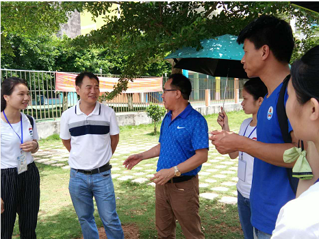 两位书记先亲切地慰问了在场的队员们,之后提问队长陆佩妍现在三下乡的实施情况,队长陆佩妍向两位书记作了简短的工作汇报。随后,领导们和我们队伍移步到宾合小学的大门前,正好宾合小学校长叶美表也赶来与两位书记和辅导员见面。