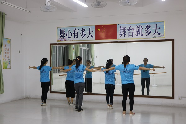 7月14日7:30,许屋学校四楼舞蹈室的灯光准时亮起,那是岭师数计学院“传承”社会实践队的街舞小队在认真排练街舞,为文艺晚会作准备。
