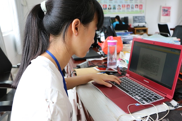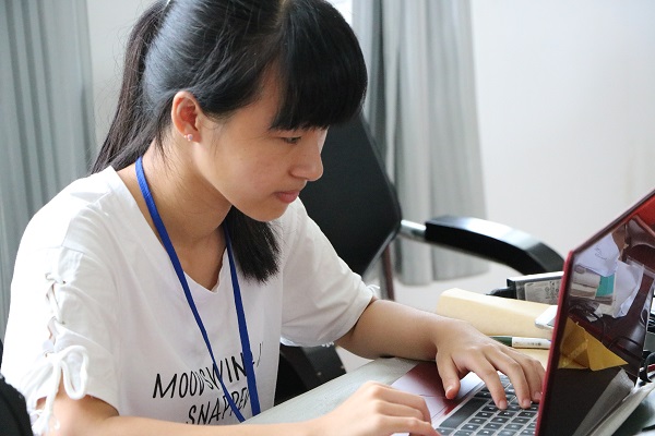 朱紫媚在撰写新闻稿