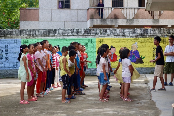 “寻骥”社会实践队三下乡教学工作中《第二课堂》的内容为:《合唱》、《手语》、《朗诵》、《擒敌拳》共四种,其中《合唱》、《朗诵》和《朗诵》为室内教学,《擒敌拳》为室外教学。每一种的《第二课堂》内容都有一至六年级的学生参与,且都由相应的教师进行教育教学。现阶段,所有第二课堂教师正在全力以赴并且如火如荼地进行教学工作,以便让学生们能在7月18日文艺表演大会上大放异彩、展现自我。