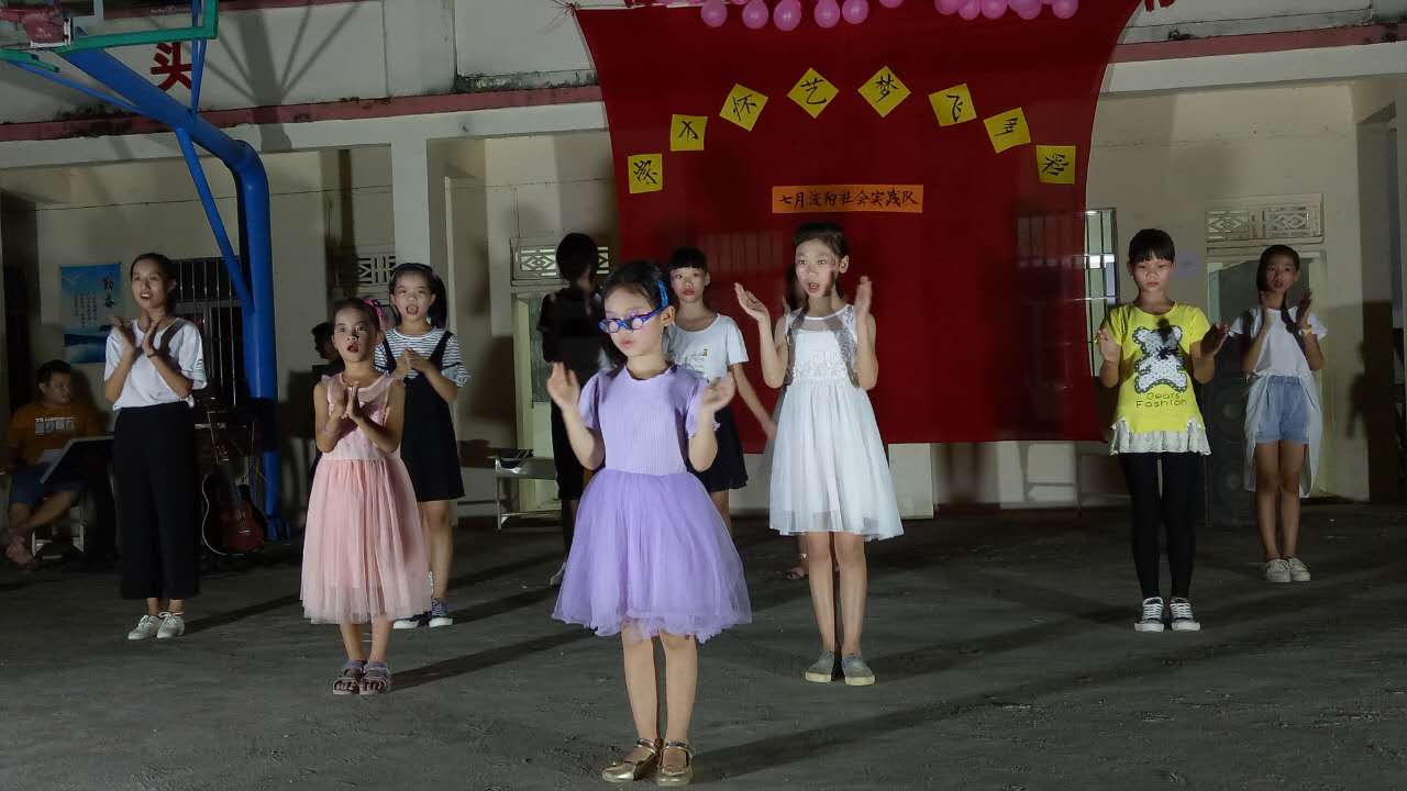7月15日晚,“七月流阳”社会实践队在湛江市马劳地小学举办了主题为“崇才怀艺,梦飞多彩”的文艺汇演。马劳地小学全体学生和“七月流阳”全体队员参与了这次汇演,马劳地小学校长、全体老师和部分家长受邀出席,不少村民也前来观看。