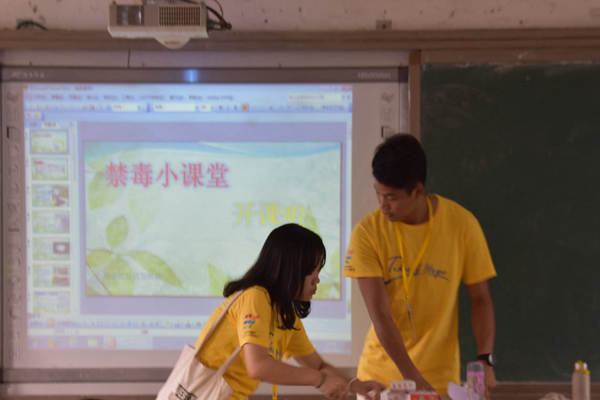 7月16日上午,为了提高学生对毒品危害的认识,增强自我保护意识,“希望潮”社会实践队在山内黄镜秋学校上了一堂禁止毒品宣传课。