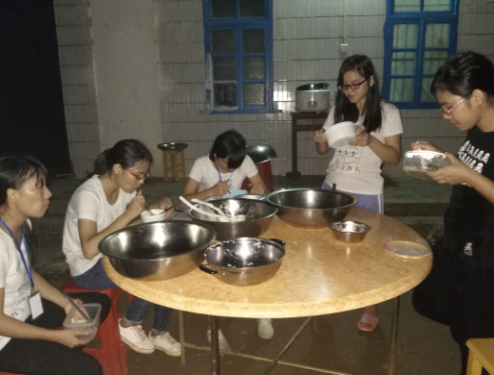 7月17日,是“开拓者”实践队伍来到那宛小学的第八天。傍晚七时许,后勤组在黑夜中仍不辞辛劳地为队伍准备晚餐,为队员们烹饪美食。