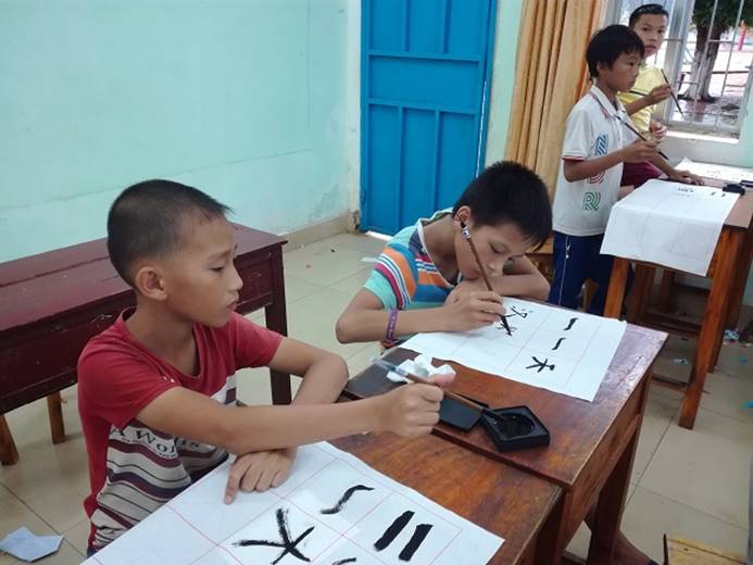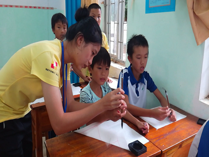为了增进学生对汉字的乐趣,7月18日,“鲲鸣之夏”社会实践队支教组为他们上一节“从书法中领略汉字”课。