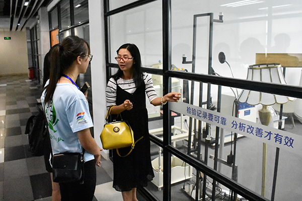 调研组一行到达目的地,受到了邓凤明主任的热烈欢迎。为进一步了解华艺工厂,感受华艺对于质量的不懈追求,邓主任带领实践队成员前往工业园的华标检测中心。据了解,华艺标检测中心是目前国内灯具企业中首家同时具备灯具和电光源两个类别的检测的机构,也是国内灯具企业中首家可以出具国家认可灯具检测报告的检测机构。邓主任表示检测环节很重要,只有检测记录可靠,分析改善才有效。