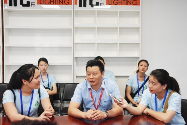 7月18日上午,岭南师范学院“朝雨”社会实践队调研组成员一行十人在华艺灯饰外联部秘书、行政主任邓凤明女士的带领下走进华艺灯饰工业园,并对工业园内的厂长、主管及普通员工进行了采访。
