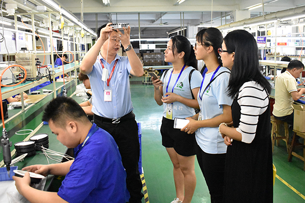 随后,邓主任带领成员们前往华艺灯饰的装配车间,参观灯饰的基础装配。由厂长李峰向成员们详细介绍了生产线上的基础零件组装、qc检测、老化监测等,并强调了灯完成了组装还要进行多项测试,保证产品的质量达标。厂长对组员们介绍了车间里种种看似不经心却体现着华艺的细心的设施,如车间门口的静电导出装置等。参观结束后,厂长李峰向组员们谈论了有关自己从事灯业方面所遇到的挫折,以及华艺灯饰转型等方面的经历,并多次强调华艺灯饰的成功离不开对质量的追求。
