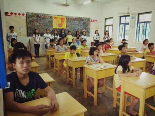 7月18日下午,岭南师范学院“开拓者”社会实践队队员给那宛小学的学生上了一节总结班会课。