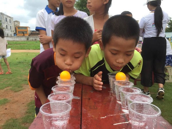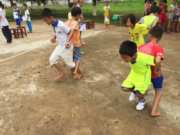 上午7时,实践队的成员们开始搬桌子、凳子等布置活动现场。八点半,运动会正式开始,孩子们在小老师的指挥下兴奋地集中在学校的空地上。一声“开始!”后,孩子们立刻向设置的游戏点跑去。