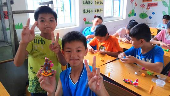 “向阳”社会实践队的第二课堂的设计侧重渗透中国传统文化教育。7月19日下午,主教邝洁霞老师为学生们上了别开生面的泥塑小课堂。