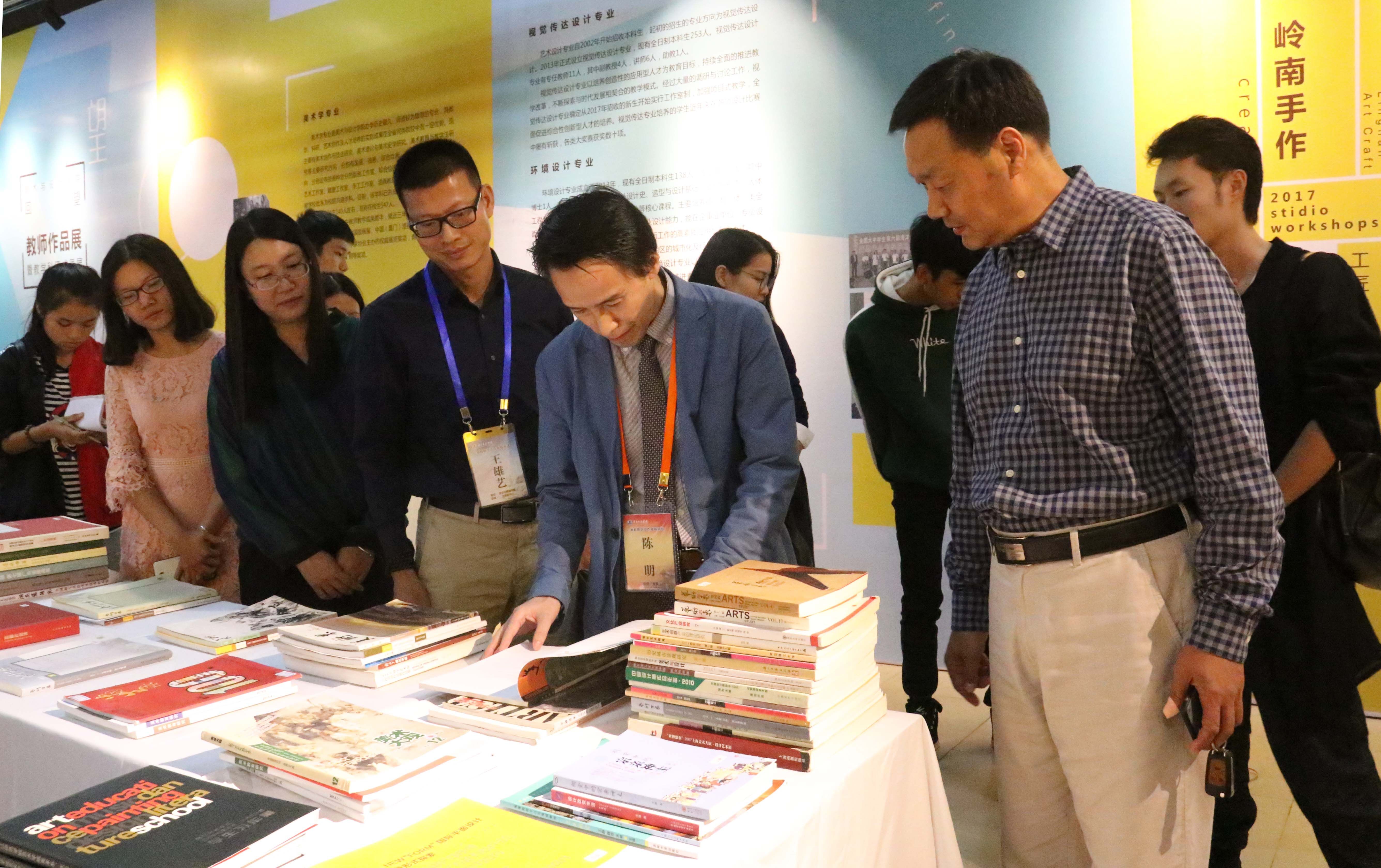 陈明教授一行首先来到教师科研成果展区,陈明教授仔细翻阅了教师作品,并对我院教师科研成果给予高度赞许。他提出,今后要继续注重优秀人才的培养和引进,在教学研究成果方面提升增量和存量。