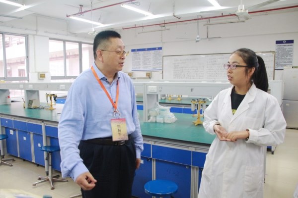 田振军教授考察了生命科学与技术学院的细胞生物学实验室、分子生物学实验室、分子仪器室后,认真听取了学院的情况介绍,并与领导班子进行了深入的讨论交流。会上,陈道海从学院概况、师资队伍、教学和教师资源保障情况、人才培养的主要措施及成效、教学工作存在的问题与改进措施六大方面进行了汇报。