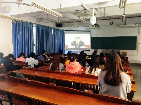 12月18日上午,机电工程学院组织全体教师和部分学生在燕雷楼301室共同观看庆祝改革开放40周年大会现场直播,认真聆听习近平总书记的重要讲话。