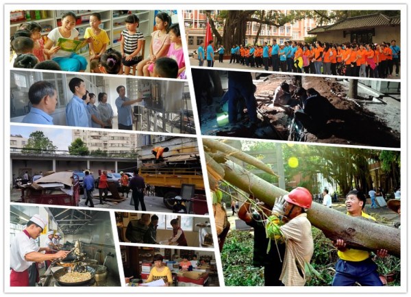 打造满意后勤品牌。以“三服务、三育人”为宗旨,以开展“优质后勤服务月”为载体,不断凝练后勤精神,提升服务质量。特别在学校评估、抗击台风、登革热防控等重大事情方面,发挥后勤人吃苦耐劳,乐于奉献的优良品格,深得师生和同行的好评。学校先后被评为“广东省教育后勤先进集体”、“广东省优秀后勤服务集体”、“广东省高校伙食管理先进单位”、“广东省绿色幼儿园”。