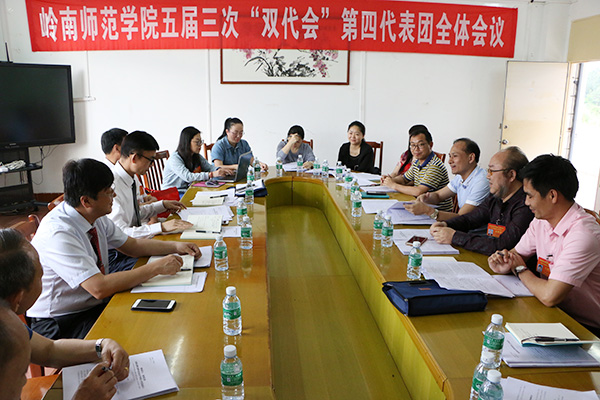 岭师新闻中心讯:4月27日下午,学校第五届教代会暨工代会(以下简称“双代会”)第三次会议隆重召开。开幕式结束后,第四代表团讨论会在美术与设计学院会议室举行。学校党委副书记黄达海参加审议。