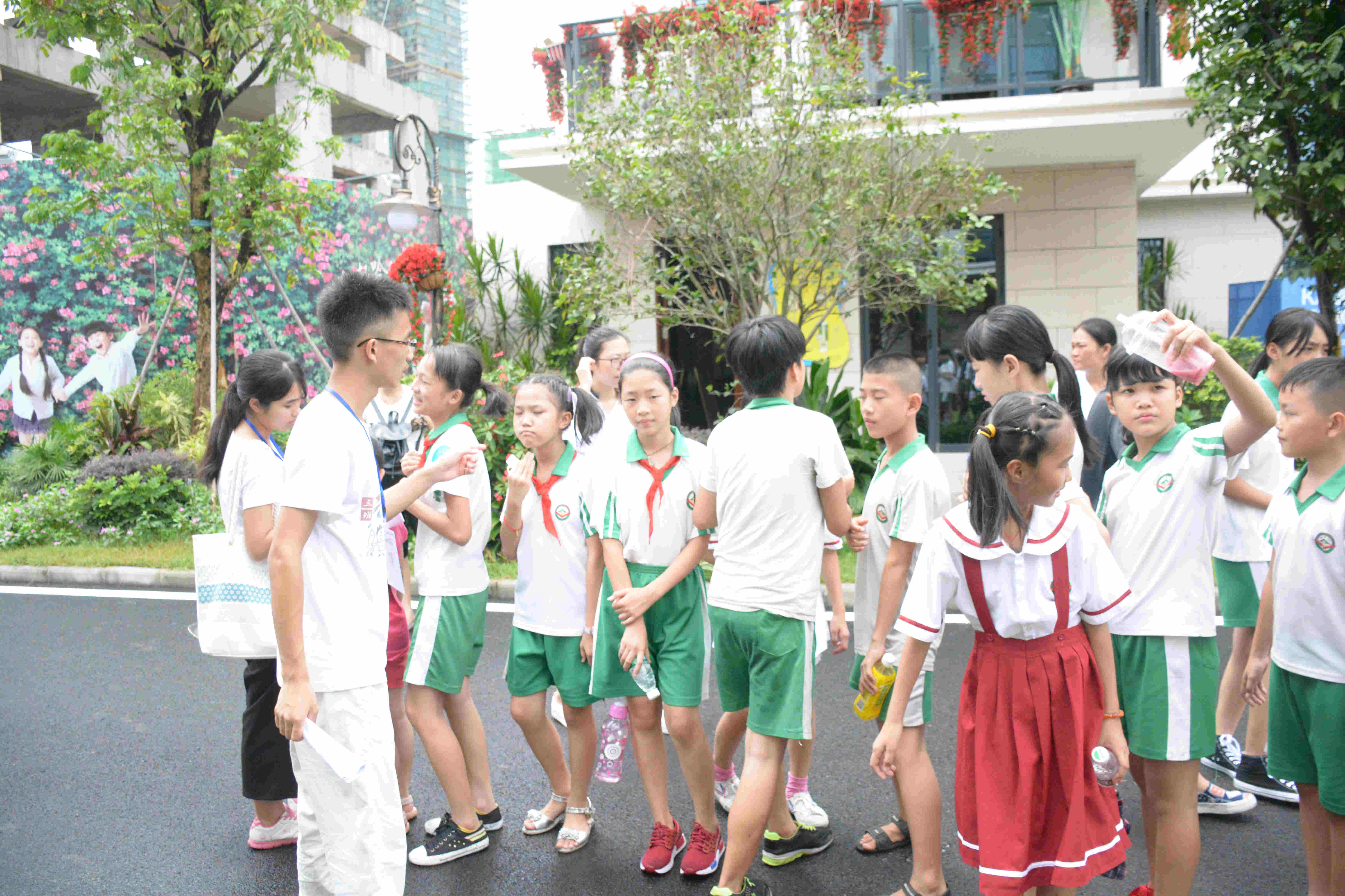 队员们细心照看每一位队员。而在活动过程中,因天气较为闷热,在参与室外活动时就有一位小学生就出现身体略微不适、轻微中暑的情况,但那位小学生觉得没必要通知随行的医生,坚持只要休息一下就好了,但队员梁房娣仍不放心,亲自跑去旁边的小店给这位学生买来水,带她在阴凉处休息,还一直细心地询问她的身体情况,劝说她看医生,最后还提前带她回到车上。