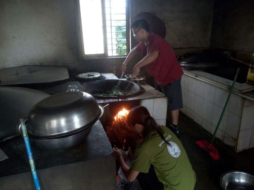 每天的后勤人员必须在当天六点的时候就起床开始烧水,洗刷炊具,而后勤组组长在六点多就要骑小摩托车去较远的镇上的菜市场买菜,在买菜前就要考虑好一日三餐的资金分配与营养膳食的搭配。所以,买菜也就成为了后勤组的一大难题。即使如此,后勤组成员仍然一丝不苟地努力做好后勤工作。