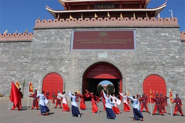 来到茂德公古城的城门下,我们抬头仰望着高大宏伟的城墙,瞬间被震撼到了,自己从未在现实生活中见到如此气势雄伟的古代建筑物,而我们在它面前宛如空气中的一粒沙。突然,“嘭嘭嘭”的鼓声响起,原来是开城的时刻到了,高大的城门逐渐被打开,里面涌出许多士兵,并排两列,守护在城门两边,紧接着,有宫女迈着轻盈的脚步上场,大家的眼球瞬间被婀娜多姿的宫女吸引住了,沉浸在她们优美的舞姿中,真是一场异彩纷呈的视觉盛宴。