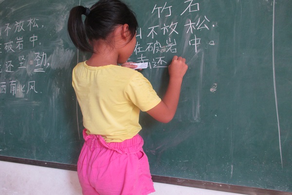 首先进行的是硬笔大赛。学生们拿到比赛题目后,神情专注的集中在纸上,认真的写好一笔一画,同学们都尽情发挥,书写出有自己独特风格的字。三尺讲台,一只粉笔。在三笔字比赛现场,学生们不紧不慢,用心写好每一个字,对自己不满意的字,他们擦了又写,写了又擦,直至自己满意为止。学生做事一丝不苟的精神赢得了队员们的点赞。江车小学学生对于写毛笔字比较陌生,他们都是没有经过毛笔专业训练的学生,甚至平时也比较少接触毛笔。但是经过了实践队员的教导,他们对毛笔字有了更进一步的认识。即使他们的握笔姿势依毛笔字然有点生涩,下笔的力度不够大,可是他们依然敢于表现自己,敢于挑战。因为不是专业人士,写的字并不是遒劲有力,有些写“歪歪扭扭”,稚嫩的笔迹,反而显得孩子们很可爱。在赛场上,学生们无谓胜负,互相帮助。学生们写好字后,问同学“我写得好不好看?”,同学们热情的回答,并细心的指出写得不好的地方。友谊第一,比赛第二。结果不是最重要的,重要的是学习的过程。