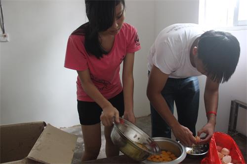 “师姐,你做的菜好好吃喔,以后我们跟着你混就有好吃的啦”“师姐,你以后每天都给我们做菜好不好,那我们肯定会被养胖的”,笑声和夸奖声萦绕在宅窄的小屋子里,看到他们吃得那么开心,我也感到满满的成就感。为了这一顿饭,我从下午就开始忙活起来了,从买菜,买鸡,和老板讨价还价,洗菜,做配料,炒菜等,一系列的准备下来,汗水早已经渗透在衣服上了,