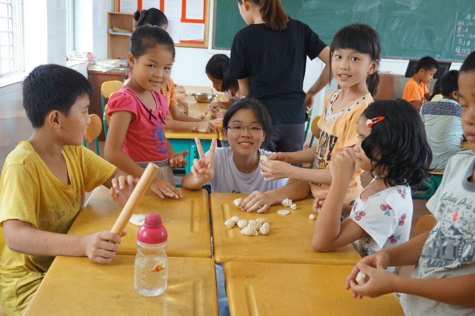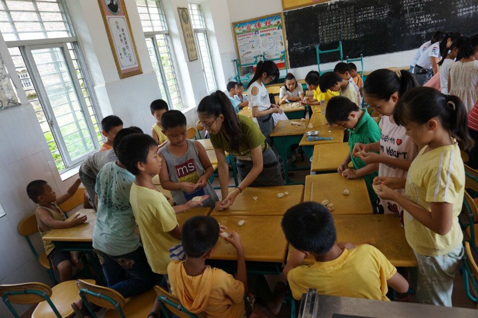 我来自烹饪班,专业课程包括面点制作,要学习各种形状的造型面点,如包子,油角,灌顶饺,凤眼饺,桑叶饺,四品饺………如此有趣的课堂又实用的课程怎能不推荐给学生?于是,这天的下午,东坡小学三个年级就开展了轰轰烈烈的面点课程。桌子摆成堆,学生围着坐,小老师们站在中间为学生示范各种花式面点。小老师们各展所长,捏出各种吸人眼目的造型饺子,也得到了学生们的一声声赞叹。当然,我也参与其中,但与别人不同的是,我的最大感想却是学到用时方恨少,学而不精徒伤悲,而不是今天很开心能与小孩子分享一些她们觉得有趣的东西。学生们开心认真的表情,让我不禁想把我所会的一切都教与她们。但教学生的造型饺子,有的自己还捏得不像样子,如何用它来教学生呢?虽然学生觉得有趣,因为她们没见过这些花式饺子,虽然她们觉得我捏的已足够好看,但我始终无法说服自己安然地享受这个荣誉。做的不好就说明自己学得不好,就证明自己还没掌握这门技术,无论当初考试的时候,老师给的分数有多高,我们始终要对自己负责,技术是用来生活的,不是用来考试的。