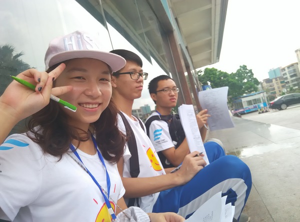 因为我们队伍是一支全调研的三下乡社会实践队伍,所以我们的调研活动十分繁重。湛江的太阳总是来得猛烈而又火热,而调研人员在室外温度高达35摄氏度的时候,放弃幽凉的空调,放弃在假期悠闲的生活,毅然决然奔波在滚烫的柏油路上。而我作为宣传组的组长,并没能深刻地体会到他们的辛苦,直至今天,我跟着他们出去街道调研,才真正从心底为他们感到心疼。并不是所有人都愿意填写我们的调查问卷,也并不是所有人都明白我们的工作性质,甚至部分人认为我们在传销,或是为旅游社卖广告,面对这些直截了当的误会与怀疑,我们只能将嘴角扬起到最灿烂的弧度,跟他们解释清楚我们的目的。