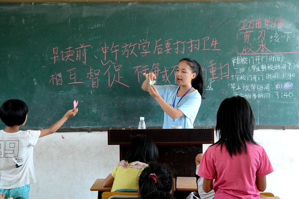 为了拓展学生的课外知识,锻炼学生的手工能力。7月17日下午,外语院“daisy”社会实践队支教组迎来了第一节手工课——“樱花”的制作。