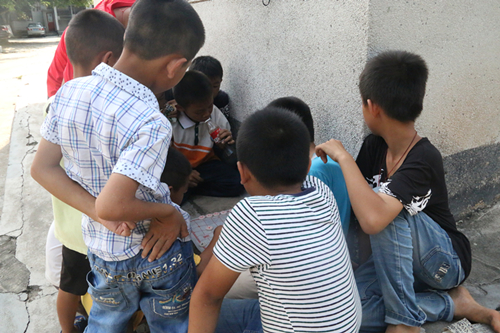在上完棋艺课的第二天,就有学生自己买了象棋,课余时间就在桌上或者是地板上铺开薄薄的塑料纸,摆起棋子,一起切磋探讨棋艺。一开始只是一两个人在下,没过多久就有好几个学生围聚了上去,你一言我一语地探讨战术。偶尔,支教老师也会凑上前指导几下,但更多时候是一脸欣慰地看着孩子们认真专注地下棋。