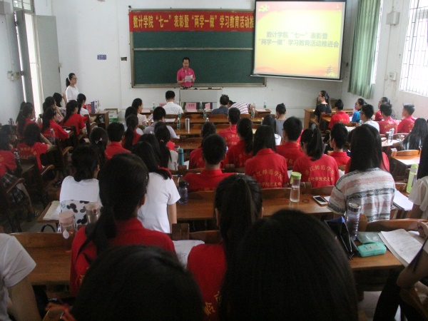 为树立典型鼓励先进,继续推进学院各项工作,带动全体师生在学习工作中形成 “创先争优”的良好局面。7月1日下午,数计学院2015-2016学年度“七一”表彰暨“两学一做”大会在榕燕楼107教室举行。数计学院院长李晓培、党委书记李健彬、党委副书记唐洪浪等领导出席了本次大会。