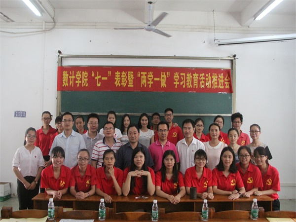 李健彬宣读《数计学院七一表彰的决定》。本决定肯定了党支部和广大党员在校、院的中心工作中的各项工作开展得扎实而富有成效、新时期共产党员的良好精神风貌以及先锋模范作用,值得给予崇高的敬意,值得给予表彰。同时,表彰决定对受表彰的优秀个人、先进集体和广大党员寄予如下厚望:对于受表彰的优秀个人、先进集体应该要珍惜荣誉,谦虚谨慎,戒骄戒躁,再接再厉,带动和影响全体教工学生积极进取,奋发向上;对于广大党员,应该要向先进典范学习,牢记党员的宗旨,明确自身职责,坚持用中国特色社会主义理论体系武装头脑,认真践行社会主义核心价值体系,坚定理想信念,始终保持党的先进性,带领广大教工学生刻苦学习、全面发展,为开创我院各项工作新局面而共同努力。