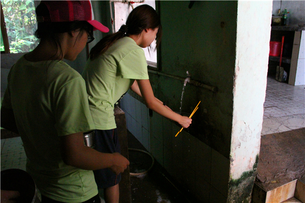 清苦的环境使我们必须团结友爱。每当有人需要什么,同学们总是不吝啬于伸出援助之手,有人掉队了,前面的同学便停下等待或者拉他们一把,然后继续前进。有同学因为要做的工作太多,马上就有其他同学帮助他,让他减轻负担。第一天我们就愉快地合作,懂得知足常乐,学会珍惜。原本总是抱怨学习生活艰苦的我们在看到农村小朋友们虽然学习生活条件要更加艰苦,但仍然留校学习,也从来没有听说过他们抱怨。
