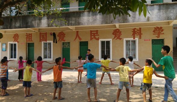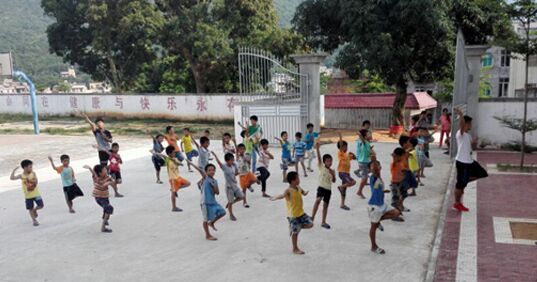 三下乡活动的第三天,我们的体育老师开始了十天里的第一节体育课。曾有队友问学生:你们最喜欢什么课?“体育课!”这几乎是所有孩子的回答。体育课,就是体育教学的基本组织形式,主要使学生掌握体育与保健基础知识,基本技术、技能,实现学生思想品德教育,提高运动技术水平。而在小孩子的心中,它只是可以暂时逃离沉闷的课室,奔往空旷室外的一节课,是真正可以玩得开心的课堂。