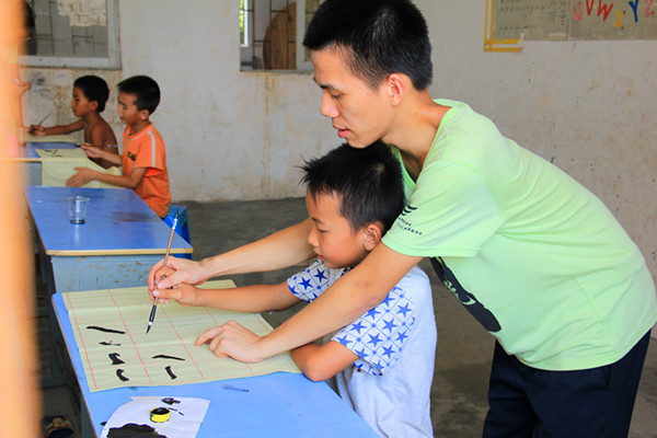 7月15日下午,我人生的第一节书法课给了一年级的孩子们。中午的时候,突然下了一场阵雨,或许这场雨便是为我接下来的上课做了一个铺垫,预示我,状况会来得很突然。想象是美好的,现实是残酷的,只有经历过残酷的现实才会让人努力的去适应这个社会。想象中的上课是美好的,但是现实的上课却把我弄得一头凌乱。