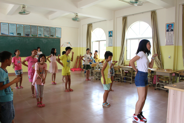 伴随着音乐,孩子们跟随者舞蹈老师温嘉敏练习着每个动作,虽然动作看起来很生疏,但是却非常的认真。据我们了解,他们平时的课程主要是语文、数学和英语这三门,很少有机会接触舞蹈。虽然有在电视上看过一些舞蹈,却没机会也没有人教他们,所以当他们得知有老师教他们舞蹈时,他们显得异常活跃。舞蹈动作都是一些比较简单的动作,所以一节课下来,他们也学得有模有样,舞蹈的音乐声与孩子们欢笑声充满了整个课堂。