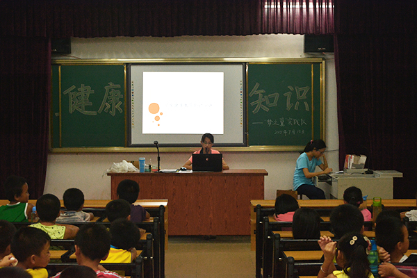 7月15日,为了引导小学生养成良好的生活习惯,增强学生们的爱护环境的意识,岭师教科院梦之翼社会实践队为锦兴小学举行了一场以“我的卫生健康,我践行”为主题的卫生健康知识讲座。主持人以深入浅出的方式把卫生知识巧妙地融入学生们的实际生活当中,并以饮食卫生常识为主要宣讲内容,让学生们了解个人卫生常识。配有漫画的ppt生动有趣,深深地吸引学生们的注意。没有平时上课那么吵闹,反而安静地聆听。主持人幽默风趣,活动现场,气氛活跃。竞答环节,学生们积极与主持人互动。最后以主持人教学生们做正确的眼保健操结束了讲座。