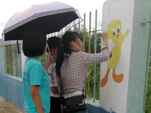 重新换装作为一项较大的工程,所需时间长,但志愿者们想到小朋友们开学时,来到学校发现学校多了许多有趣图案后开心雀跃的样子就觉得付出是值得的。希望弘越实践队在离开后也能被苏二村所记得,而墙上的绘画是我们来过的最好证明。