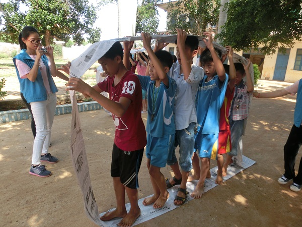 有个男孩,并不是那种很活跃的孩子,平日不会主动去和其他同学玩,今天他主动拿着透明胶,哪里需要就给哪位同学。听到有个女孩对男孩说:“我要透明胶,谢谢。”一句普普通通的话,我却感动了。因为这些天来,从没有听过他们说“谢谢”这两个字,无论怎样去教导,他们总是不愿意去说,可能是学校还有家庭环境的影响吧,而今天,我们做到了,我们“三下乡”日子做到影响这些学生了,我们已经能一点点改变他们了。